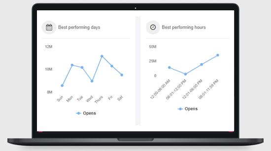 Receive the best and appropriate keyword recommendations from your historic campaigns with the help of an artificial intelligence-powered algorithm. It identifies and suggests you the top keywords to target your customers. In addition, it assists you to get the best email engagements by recommending the best performing hours and days to send your marketing campaigns, depending on campaign history performance.